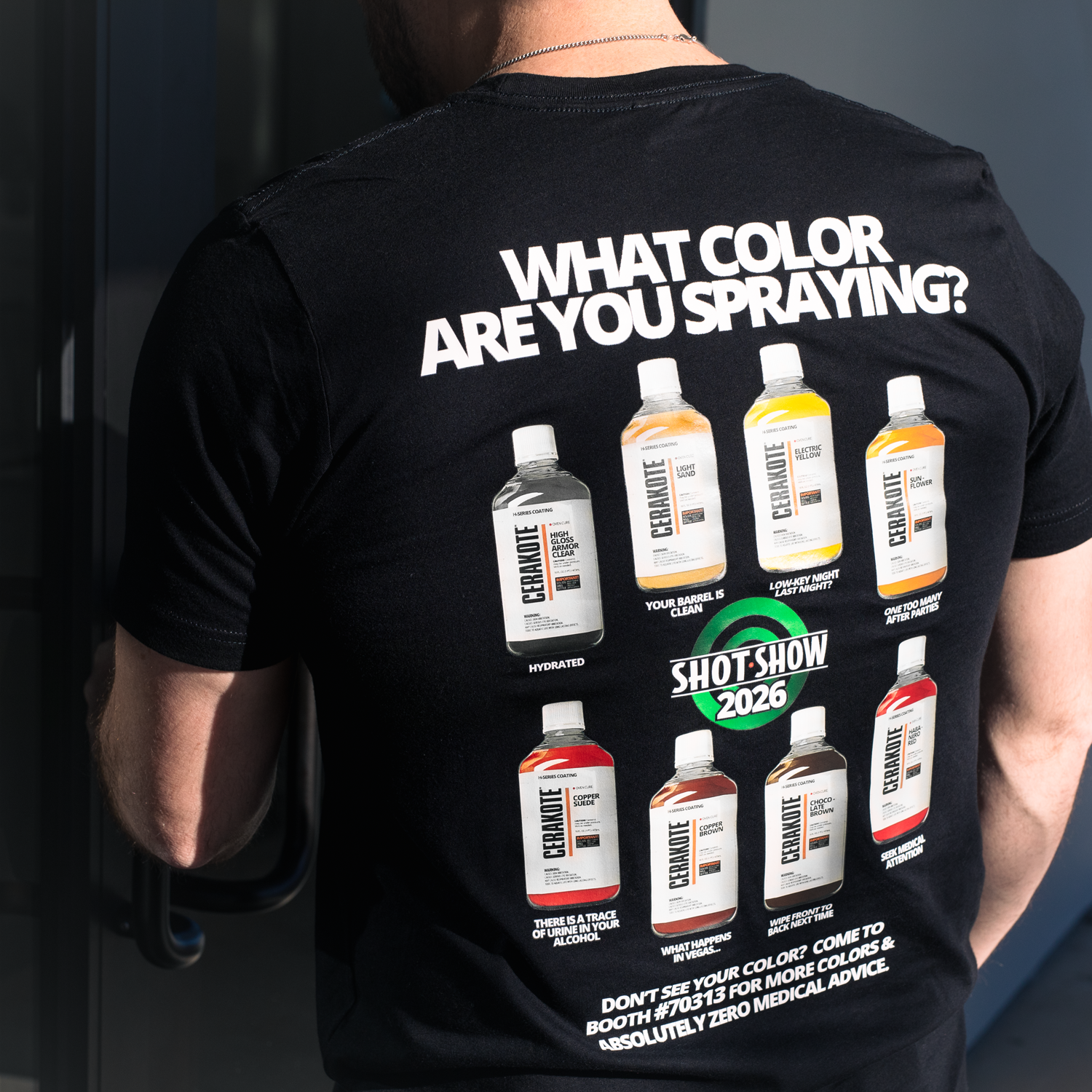 What started as a bold bathroom ad that stopped attendees in their tracks quickly became one of the most talked-about moments of SHOT Show. Now, that fan-favorite design lives on as a limited-run Cerakote tee.