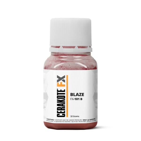 Cerakote FX Blaze è un rosso rubino intenso perlato. (L'immagine del pannello S è Blaze su Graphite Black.)
