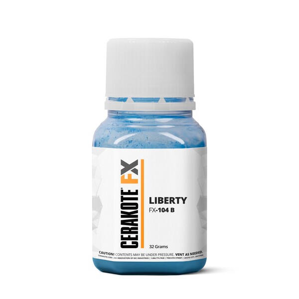 Cerakote FX Liberty is a sparkling sea blue pearl. (S panel image is Liberty over Graphite Black.)