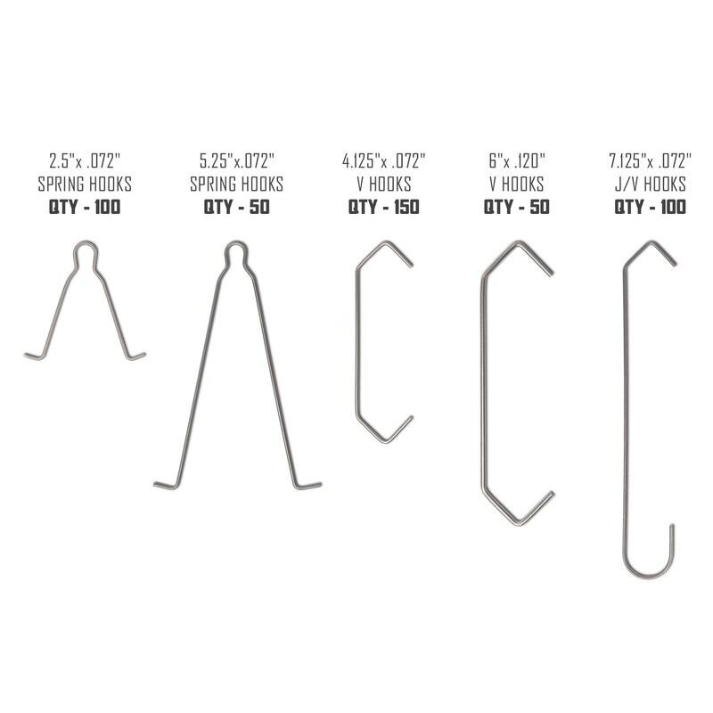 This high-quality hook kit is loaded with 450 of the most common hook sizes. All 450 hooks are reusable industrial coating hooks with multiple styles, lengths, and gauges for all coating scenarios. The variety of these hooks have been skillfully handpicked by our Cerakote® Trainers, insuring that you will be receiving the best of the best!