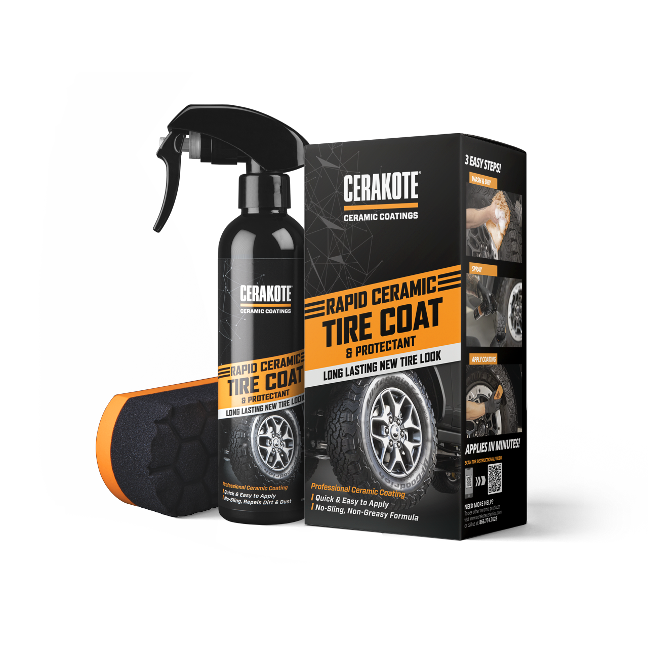 Experience a revitalized look for your tires with Cerakote’s Rapid Ceramic Tire Coat. Simply spray the product on your tires and rub it in with our supplied high quality Cerakote foam applicator. Not only does Rapid Ceramic Tire Coat give a new look to your tires, but it lasts 10x longer than the leading tire coating!