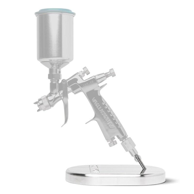 Introducing our HVLP spray gun stand. Built out of solid Aluminum this stand will hold your spray gun during mixing, straining, and cleanup. Our Professional training staff has found the spray gun stand to be very useful and a must have for your Cerakote mixing station. Spray gun not included.